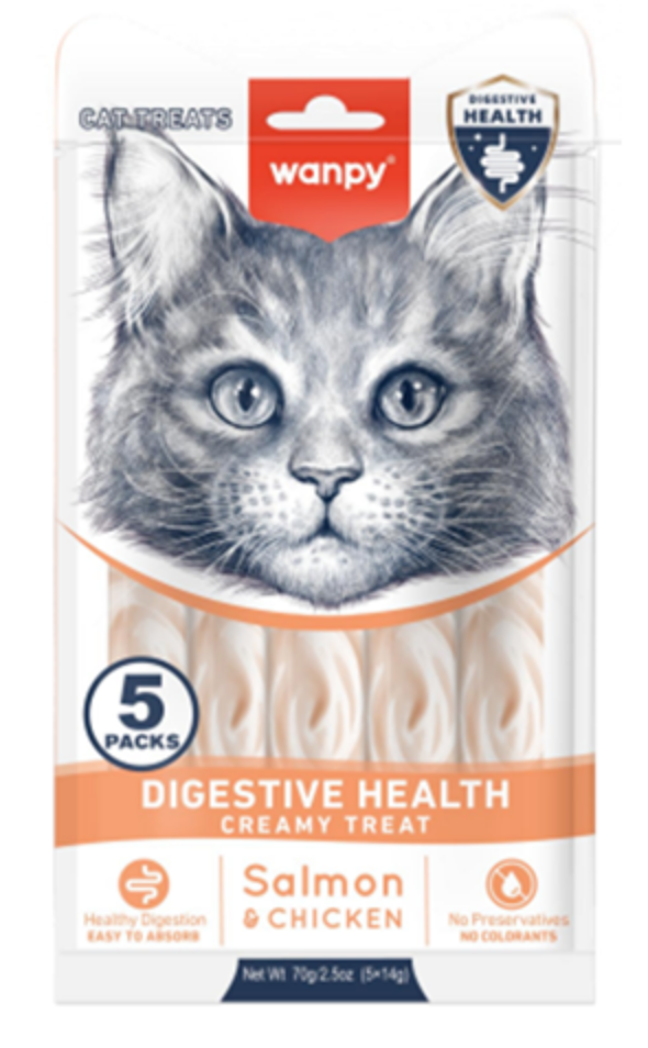 Variedad suave y ligera a base de pescado blanco, ideal para alternar sabores sin comprometer la seguridad digestiva. Perfecta para gatos con estómagos sensibles o reactividad a proteínas más comunes. - 2 sobres Wanpy Digestive