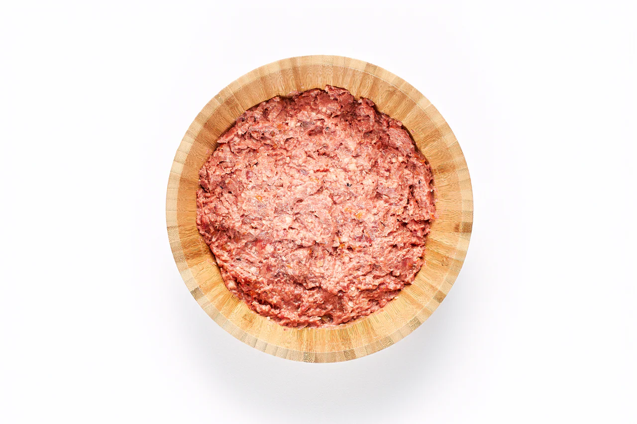 - Dieta 100 % cruda (estilo BARF), sin cereales ni rellenos, que favorece una nutrición más natural.