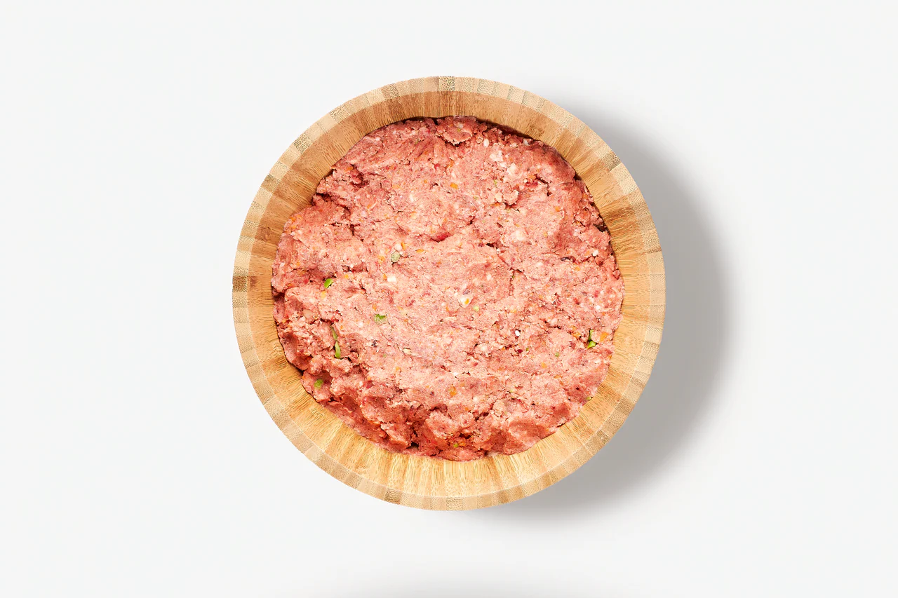 - Dieta 100 % cruda (estilo BARF) sin cereales ni ingredientes de relleno, que respeta la biología del perro.