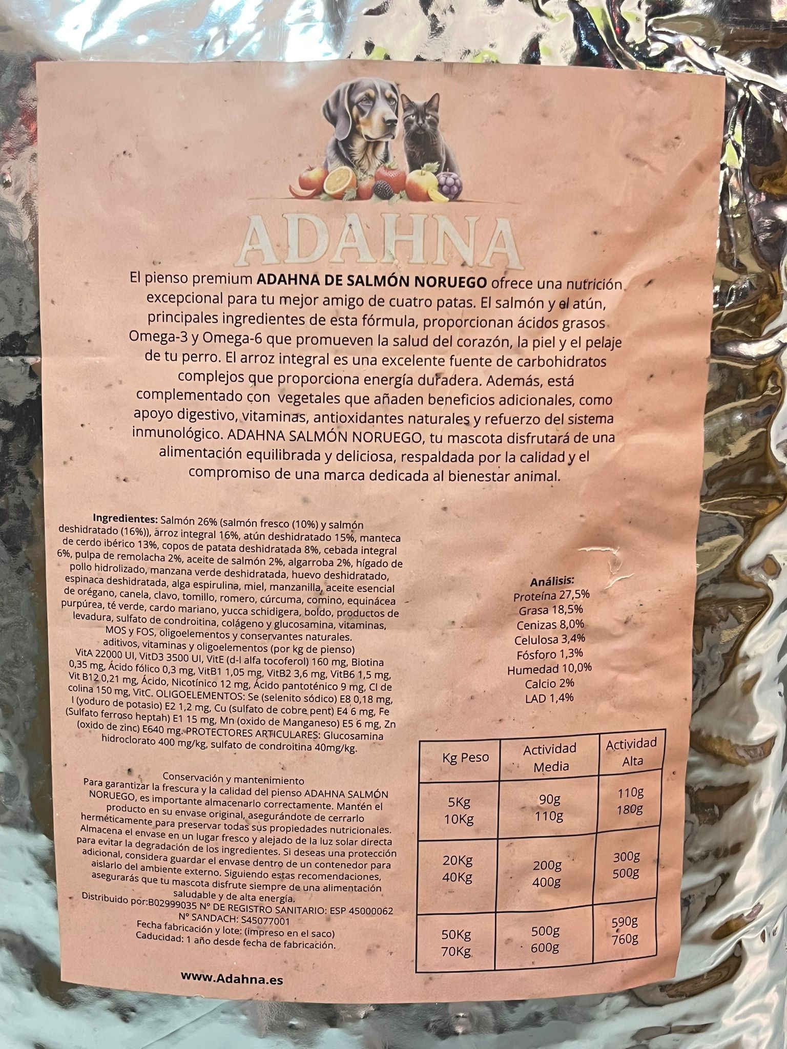 ADAHNA Salmón Noruego es un alimento premium natural para perros adultos, formulado para ofrecer una nutrición completa, equilibrada y altamente palatable. Su receta está elaborada con salmón noruego y atún como principales fuentes de proteína animal, aportando ácidos grasos Omega 3 y Omega 6 que contribuyen a la salud del corazón, la piel y el pelaje.