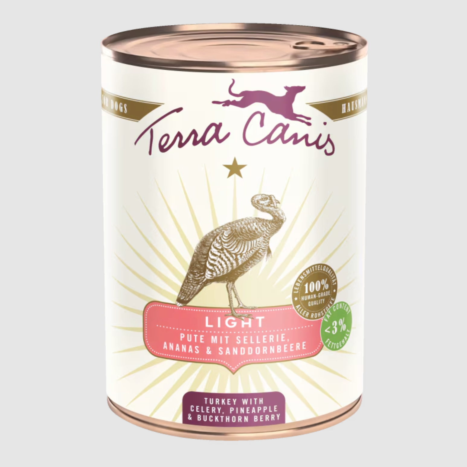 Comida húmeda natural de pavo con apio, piña y espino amarillo para perros