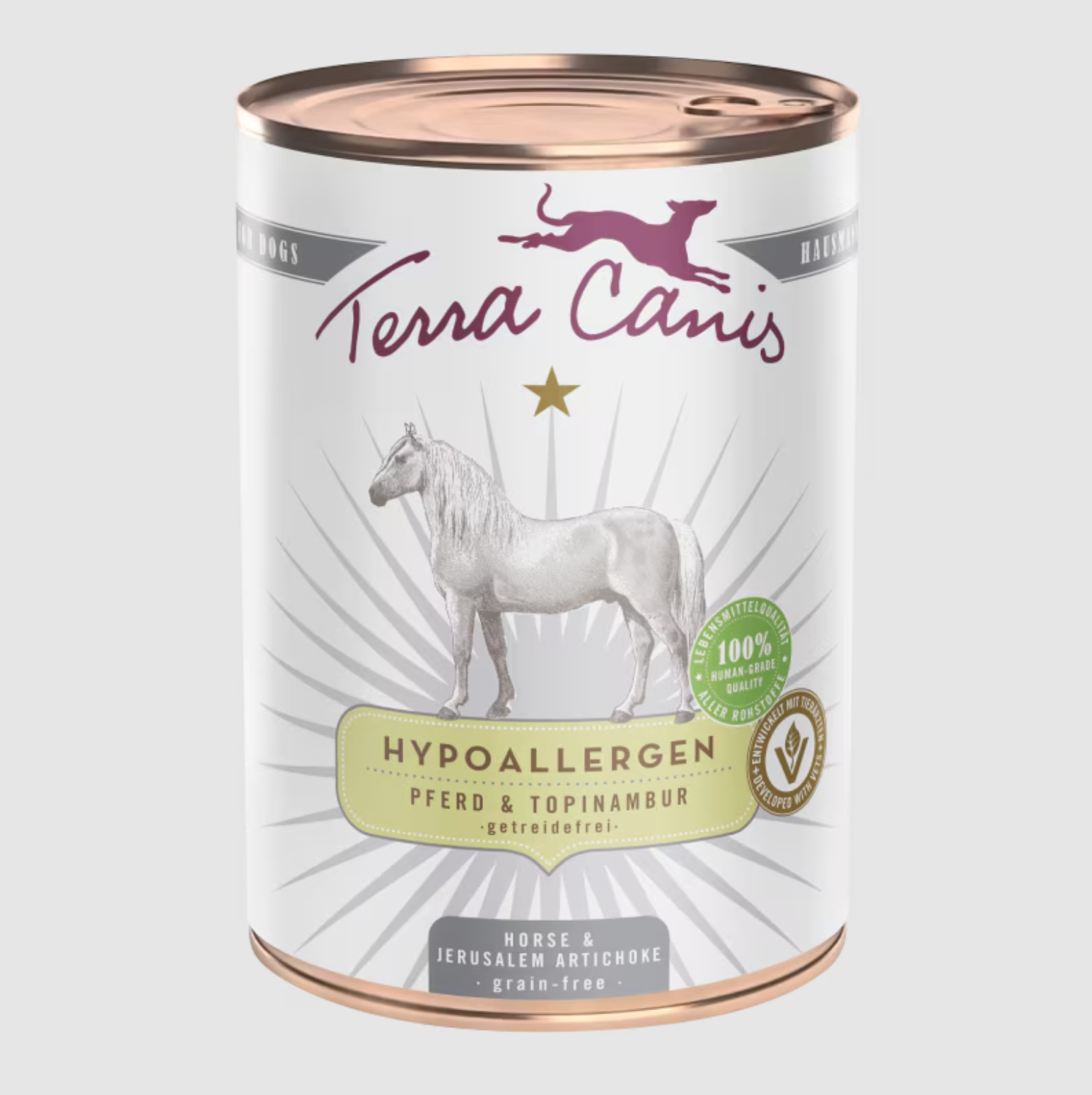 Comida húmeda natural hypoalergénica de caballo con tupinambo para perros